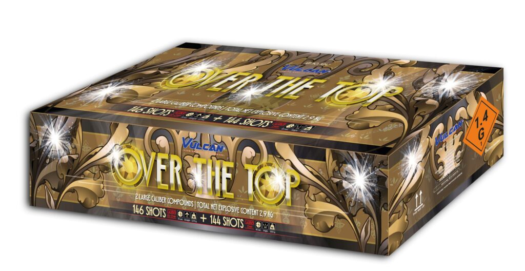 Maak kennis met “Over the Top”, het ultieme vuurwerk spektakel voor de echte vuurwerk liefhebbers. Dit indrukwekkende compound vuurwerk combineert de kracht van twee grote compounds met maar liefst 146 en 144 schoten