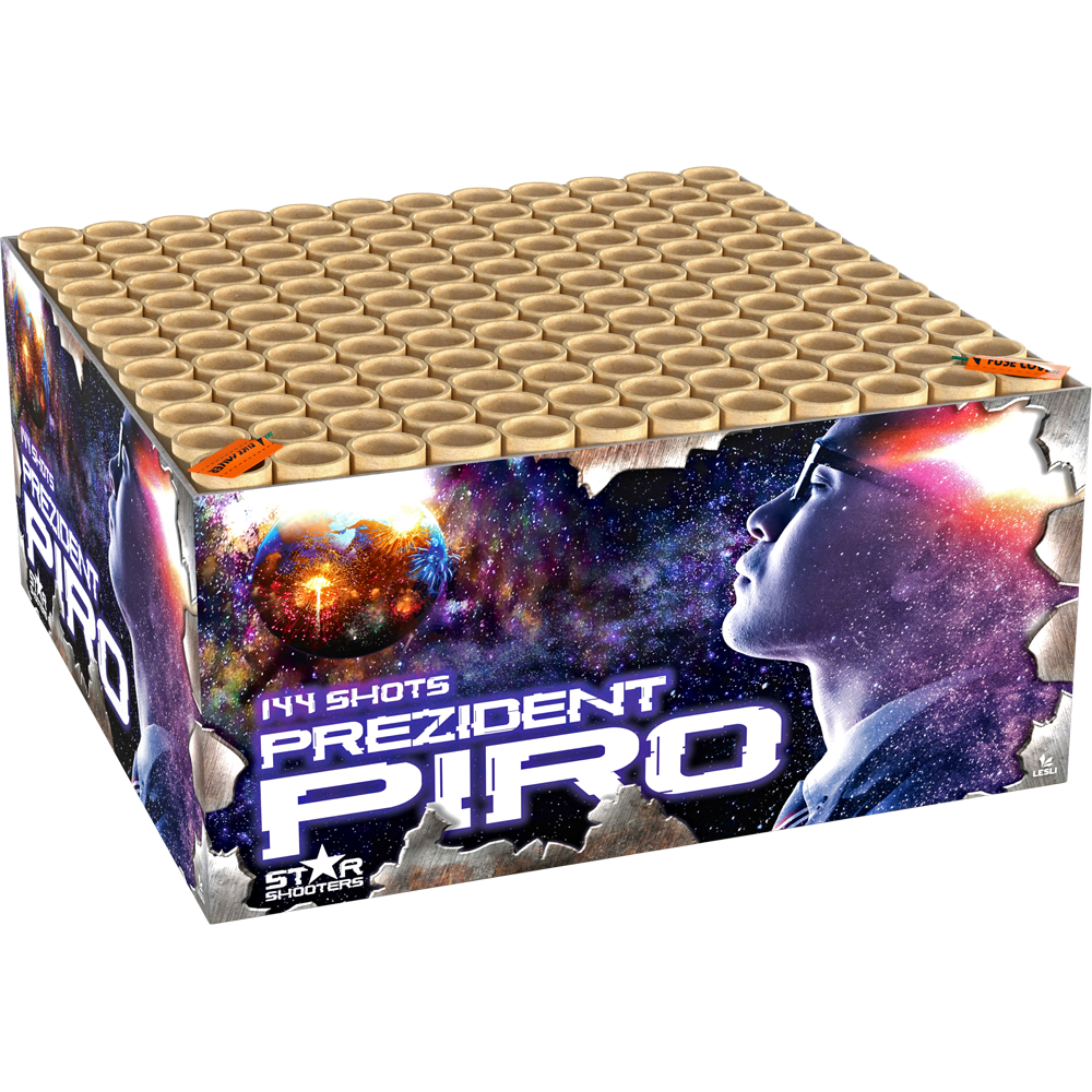 nKaliber 25 nAantal schoten 144 nBrand duur 90 Seconden Prezident Piro Goedkoop vuurwerk kopen bij Vuurwerkwinkel Aalsmeer